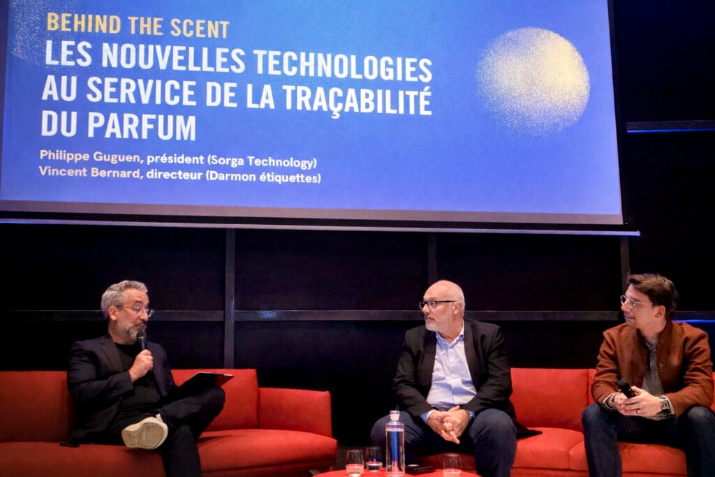 Philippe Guguen et Vincent Bernard y ont distingué avec clarté les notions de transparence et de traçabilité, tout en soulignant les défis que représentent les marchés parallèles pour les marques de parfums. À travers la présentation de leurs solutions respectives, ils ont montré comment les technologies numériques peuvent répondre à ces enjeux de façon concrète : blockchain, QR code unique, étiquettes NFC infalsifiables et plateformes digitales de suivi.